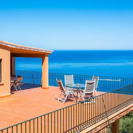 Surplombant la mer, la villa Ses Merjades dispose d'une terrasse.
